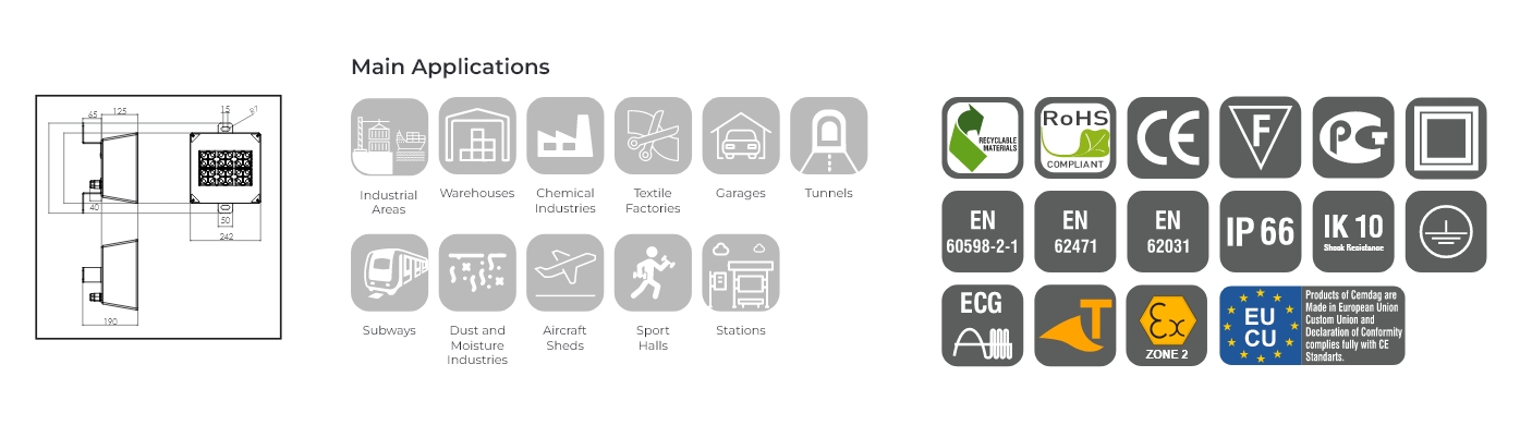 | Impact Glass Resistance | IK08 (5 J), IK09 (optional) (10 J), IK10 (optional) (20 J) |
