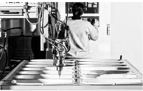 3 enheter för dynamisk tätning, gjutning och limning med robotar.