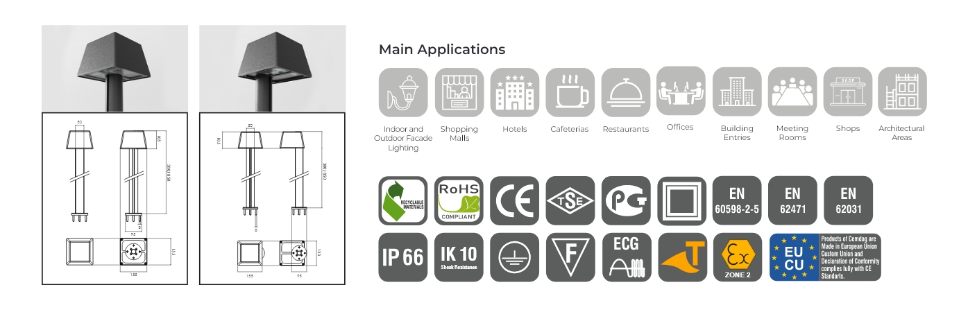 | Impact Glass Resistance | IK08 (5 J), IK09 (optional) (10 J), IK10 (optional) (20 J) |