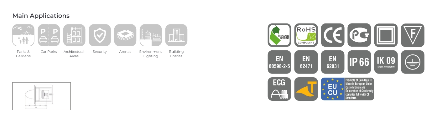 EN 60598-1, EN 60598-2-1, EN 62471,