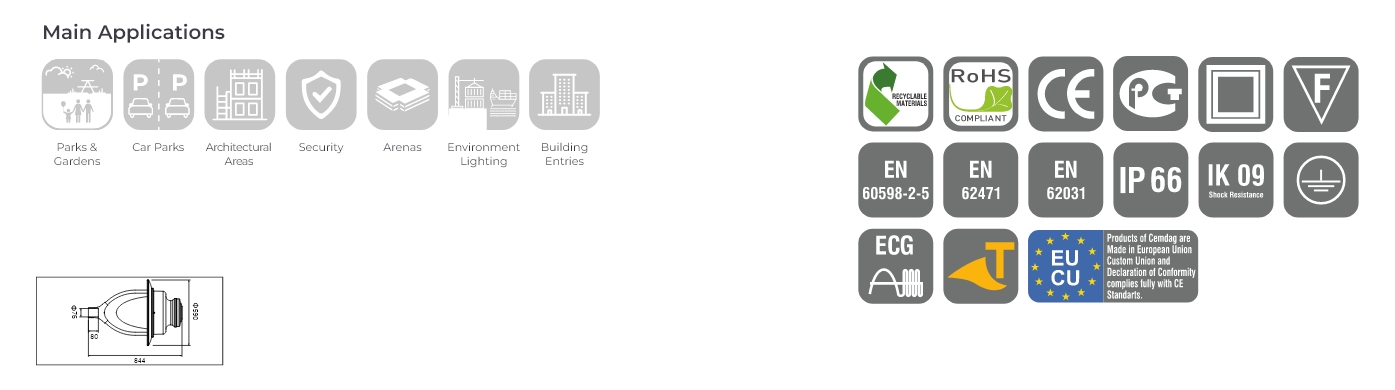 EN 60598-1, EN 60598-2-1, EN 62471,